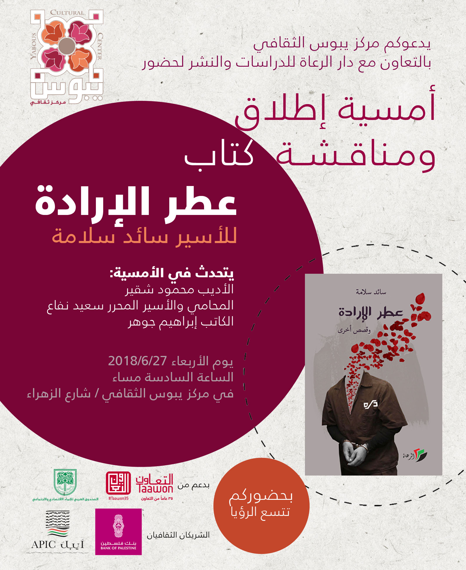 يدعوكم مركز يبوس الثقافي بالتعاون مع دار الرعاة للدراسات والنشر لحضورأمسية إطلاق ومناقشة كتاب عطر الإرادة للأسير سائد سلامة يتحدث في الأمسية: الأديب محمود شقير، المحامي والأسير المحرر سعيد نفاع والكاتب […]