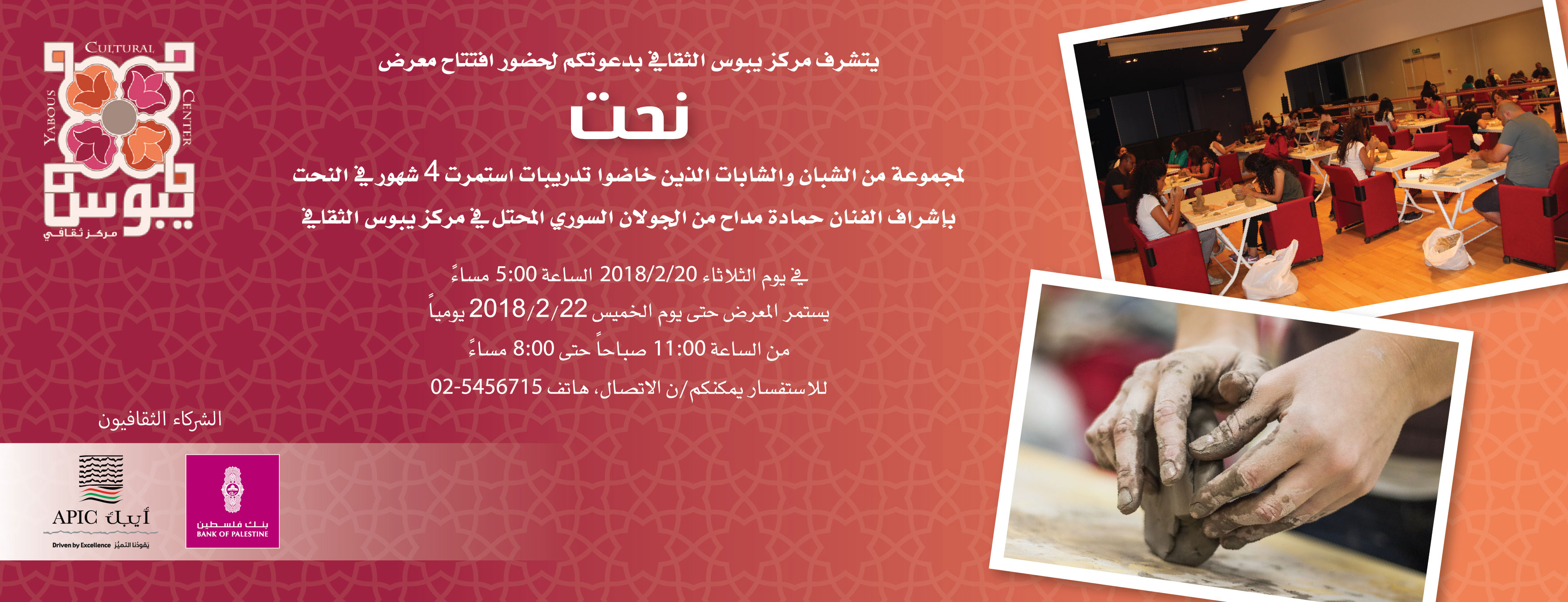 يتشرف مركز يبوس الثقافي بدعوتكم لحضور افتتاح معرض نحت لمجموعة من الشبان و الشابات الذين خاضوا تدريبات استمرت 4 شهور في النحت باشراف الفنان حمادة مداح من الجولان السوري المحتل […]