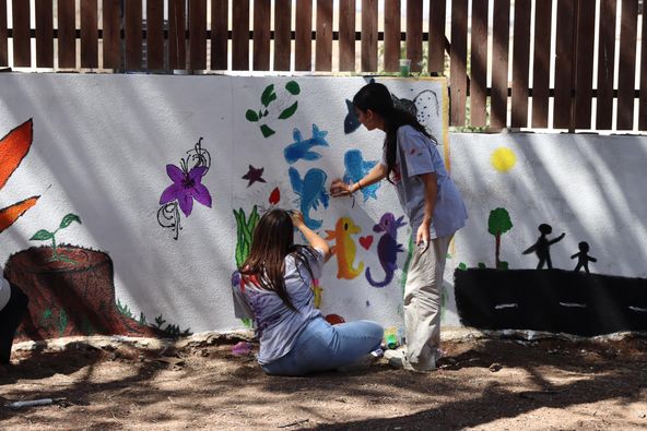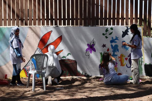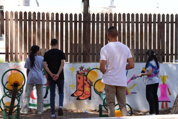 وشارك الشباب في الرسم على جدران الجمعية، وإعادة تصميم ودهان حافلة الجمعية القديمة، حيث عكست رسوماتهم وألوانهم رموزاً ثقافية تضمنت الهوية ونظرة الأمل الى المستقبل.