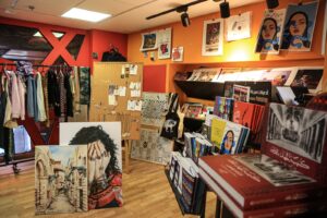 متجر يضم أعمال اكثر من 145 فنان وفنانة من جميع أنحاء فلسطين في مجالات مختلفة، منها: مطرزات، لوحات الخط العربي، بطاقات، ملصقات، اكسسوارات، اسطوانات موسيقية، كتب باللغتين العربية والانجليزية لجميع الأعمار، حقائب، … وأكثر