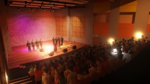 مسرح متعدد الاغراض مزود بكافة مستلزمات العروض. تستخدم لعروض الموسيقى والرقص والافلام والمهرجانات المتنوعة والمؤتمرات ( 380 مقعدا)