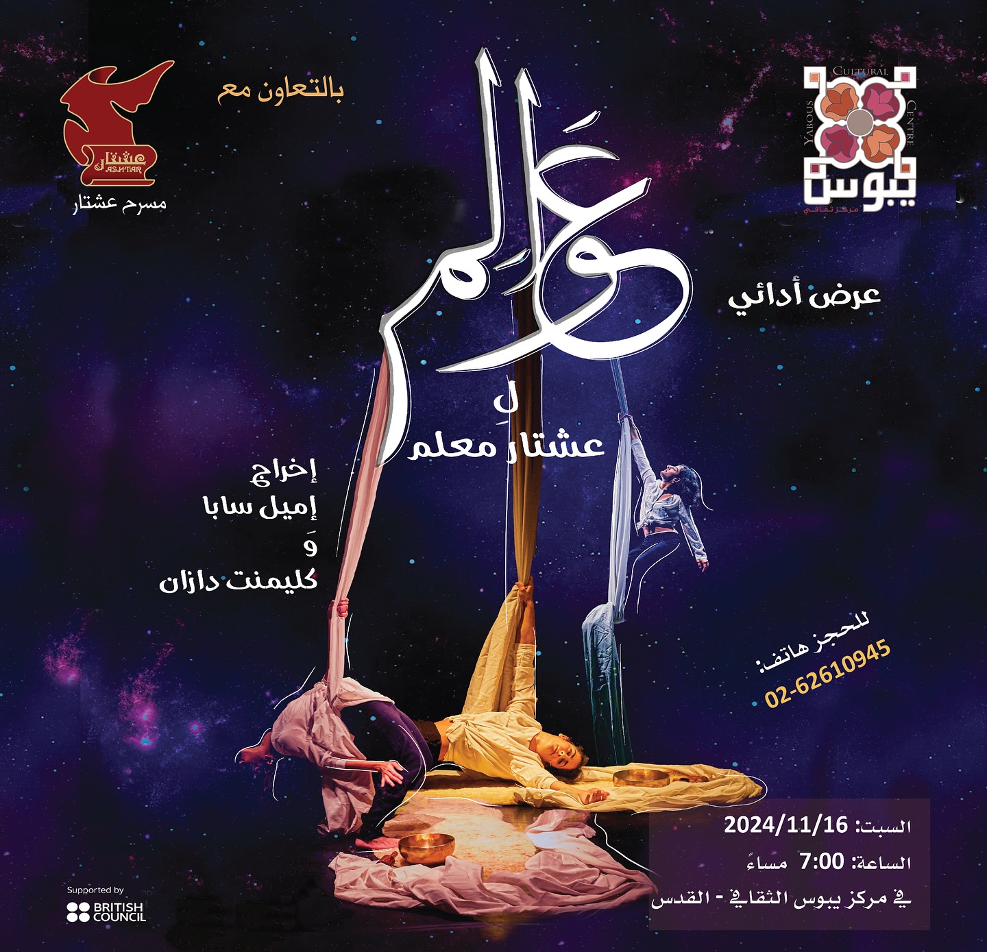 عرض فني مميز يأخذنا في رحلة حميمة مع الفنانة المقدسية عشتار، يجمع العمل بين المسرح والرقص والسيرك بأسلوب مذهل. تعيش عشتار بين فلسطين وفرنسا، وتسعى للوصول إلى التوازن والسلام الداخلي بين هاتين الثقافتين. تستخدم عشتار الروحانيات للتواصل مع ذاتها وتشاركنا في